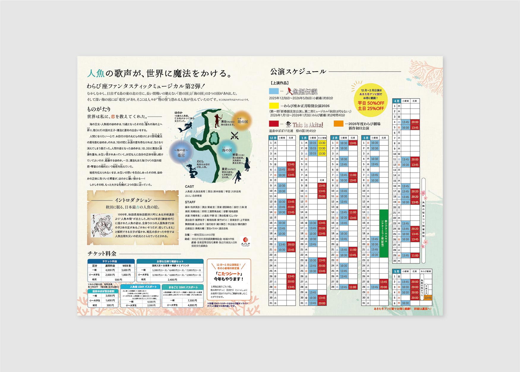 わらび座のファンタスティックミュージカル第2弾「新解釈 人魚姫伝説」。この物語の発端は、秋田で見つかった木簡に描かれた人魚です。日本最古と呼ばれるこの人魚は、多くの人がイメージする人魚とは違い、魚に手足が生えた状態のものです。なぜ、このような人魚を描く必要があったのか。そこには人間と人魚の深い関わりがあったのではないか…。まさにファンタスティックな内容ですが、心の揺れ動きがすごく鮮やかに表現されています。この公演は5月まで続くロングラン。ぜひ多くの方々にご覧いただきたい作品です。