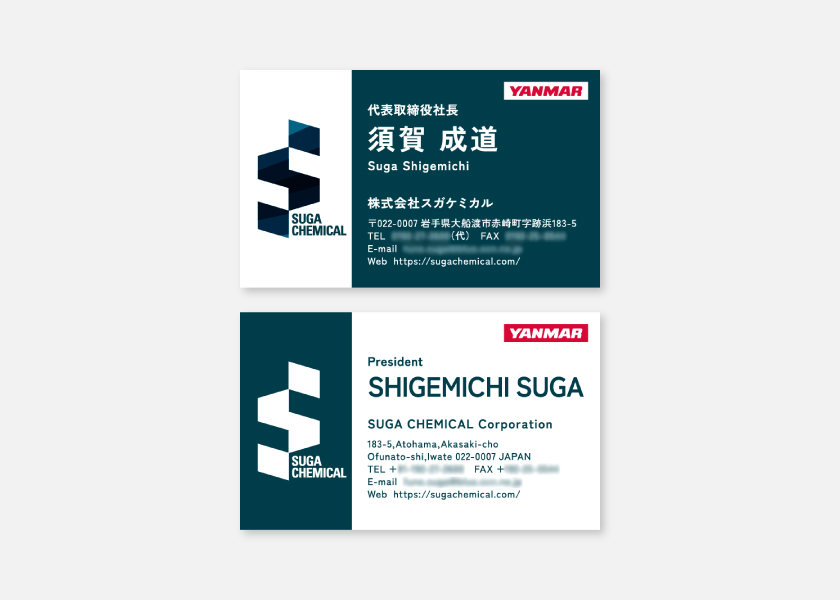 スガケミカルは大船渡市に本社がある造船製造を行っている会社です。WEBサイトの制作をライト・ア・ライトで担当させていただきました。それに付随する形で、社名ロゴ、名刺、ウェアの提案をさせていただき採用となりました。社名ロゴは作ることは一つの目的ですが、社内に、そして社外に浸透させていくことが重要と考えています。日常業務で活用するものに社名ロゴを組み込むことでより浸透力が高まっていきます。その意味で社員の方々が日常的に着用するウェアは大きな意味を持つと考えています。